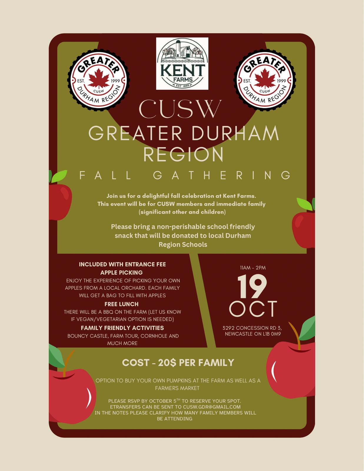 Saturday October 19th Kent Farms - 3292 Concession Road 3, Newcastle ON 11:00am - 2:00pm Cost $20 per Family Please RSVP by October 5th [email protected] Download the Information Here